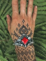 Sterling Casted Alligators are wrapped around the wristRed Rosarita HeartElephant EarsTwisted Rope SigilExclusive Piece (can not duplicate)Size 7